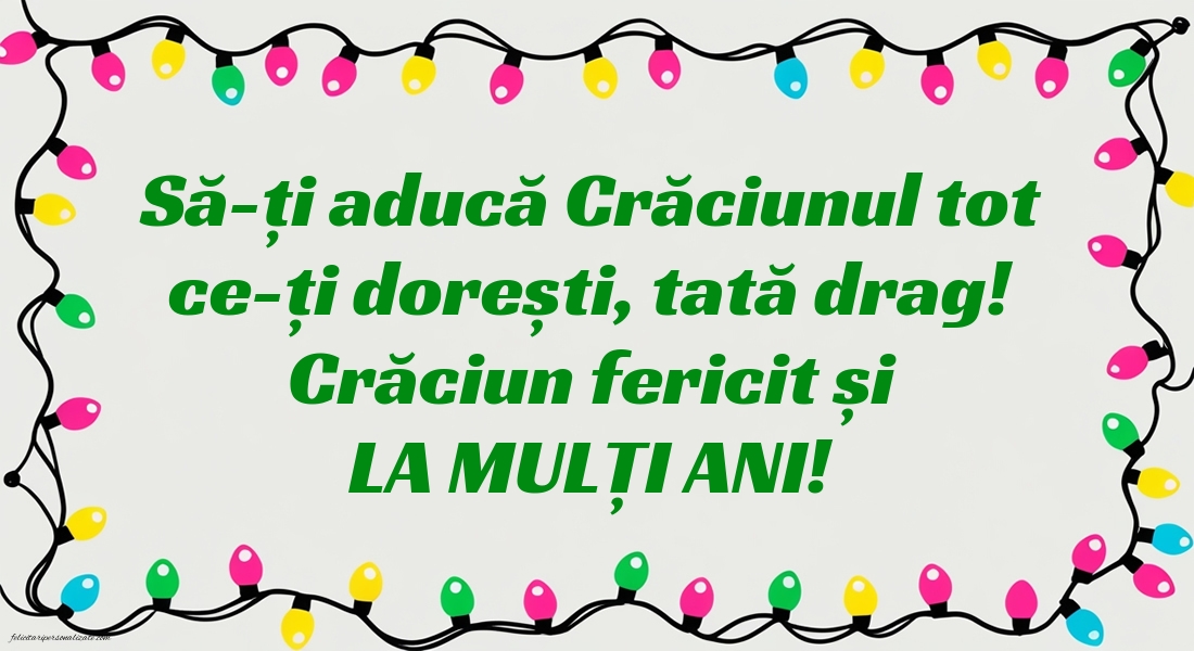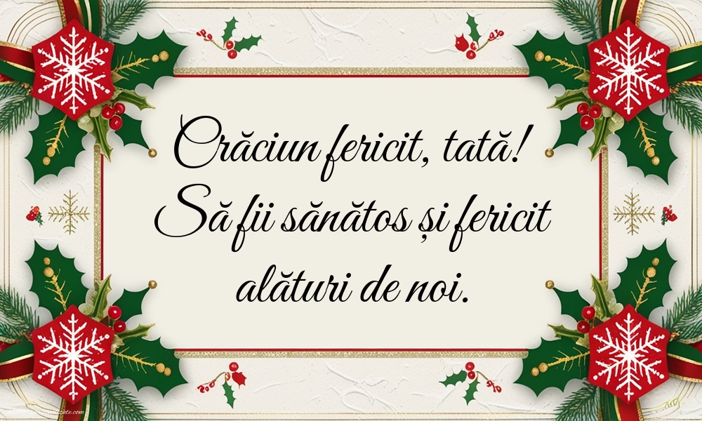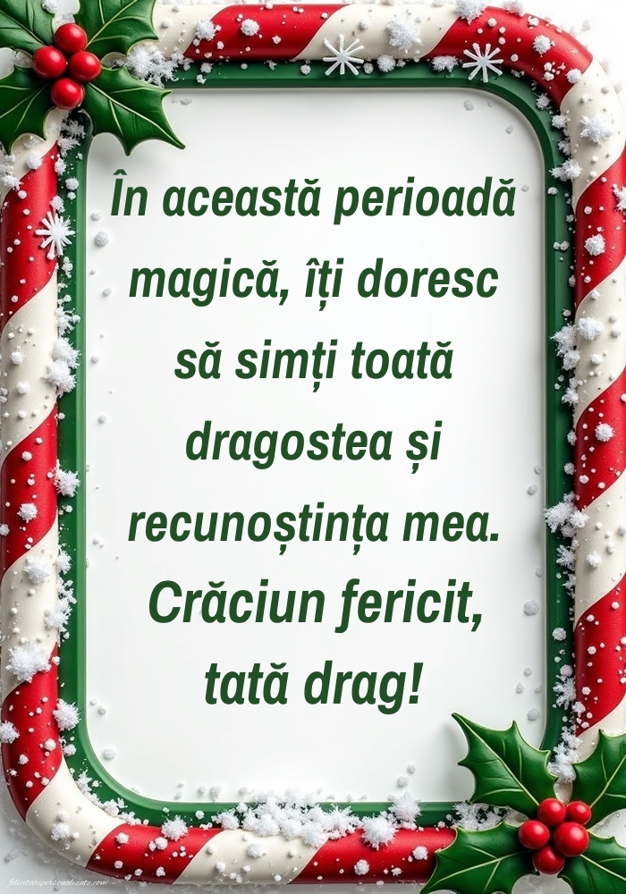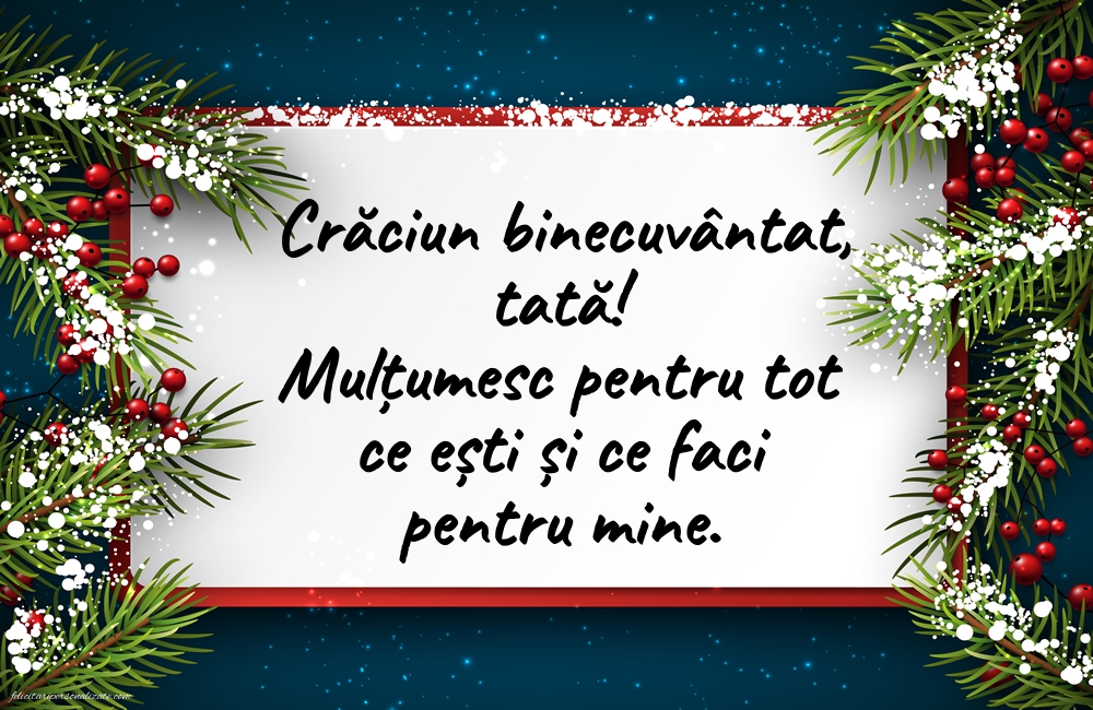 Fie că trimiți o imagine digitală sau scrii un mesaj pe o felicitare, aceste urări de Crăciun îi vor arăta tatălui tău cât de mult îl prețuiești. Spune-i „Crăciun fericit, tată!” într-un mod plin de iubire și emoție, prin cuvinte simple, dar din inimă.