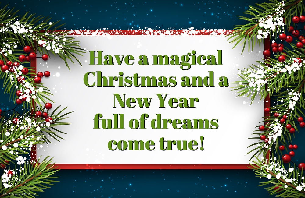 Sărbătorile de iarnă sunt un prilej minunat de a transmite urări și gânduri bune celor dragi. Pe această pagină vei găsi o colecție de felicitări și imagini de Crăciun și Anul Nou în Engleză, perfecte pentru a fi trimise prietenilor, familiei sau colegilor internaționali. Aceste felicitări sunt ideale pentru a fi partajate pe WhatsApp, Facebook, Instagram sau trimise prin e-mail, aducând un strop de magie și bucurie sărbătorilor.