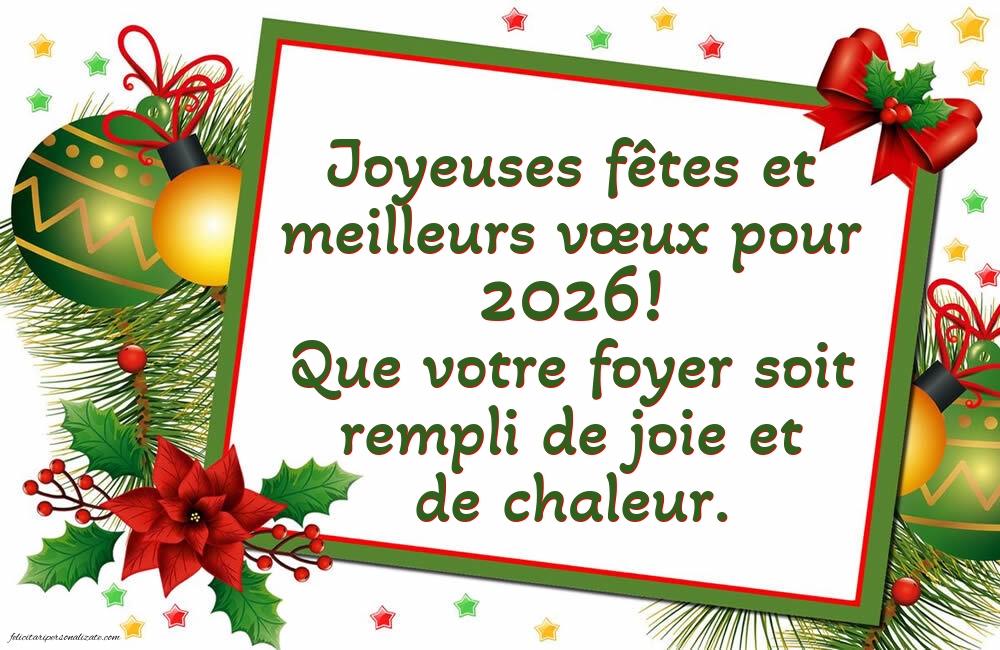 En cette fin d'année, je vous souhaite des moments de bonheur partagé, et un avenir radieux en 2026. Que la prospérité et la joie soient au rendez-vous tout au long de l'année.