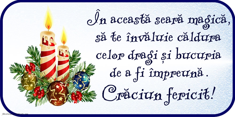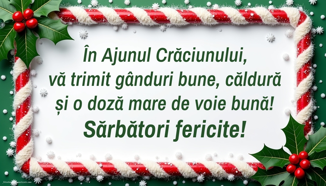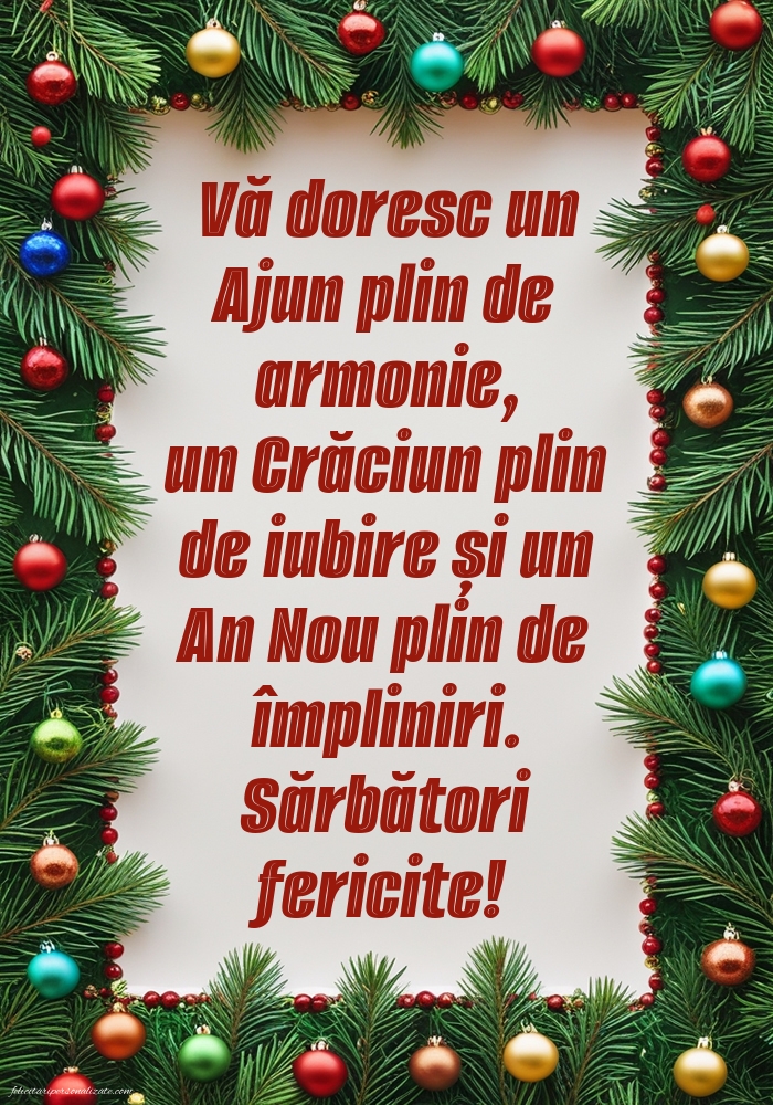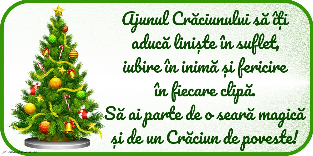 Ajunul Crăciunului este una dintre cele mai frumoase și emoționante seri din an — un moment plin de liniște, iubire și căldură sufletească. Pe această pagină vei găsi o colecție specială de imagini cu urări de Ajunul Crăciunului, ideale pentru a fi trimise celor dragi prin WhatsApp, Facebook, Instagram sau e-mail. Trimite o felicitare de Ajunul Crăciunului care să aducă zâmbete și să transmită căldura sărbătorilor. O simplă imagine plină de sens poate face diferența și poate transforma seara de 24 decembrie într-un moment memorabil pentru cei dragi.