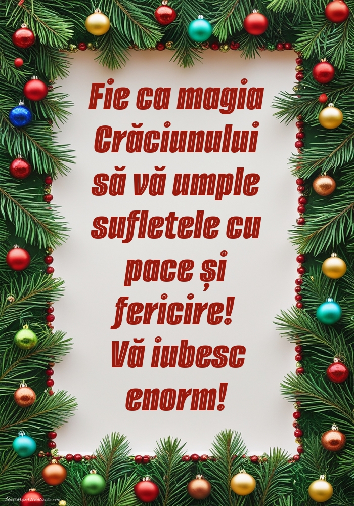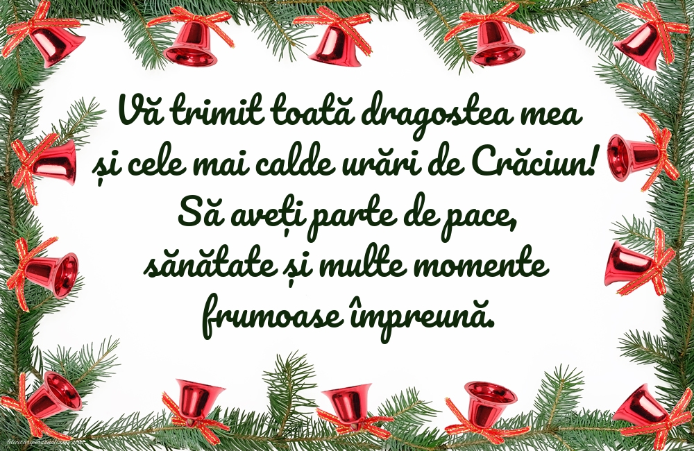 Vă trimit toată dragostea mea și cele mai calde urări de Crăciun! Să aveți parte de pace, sănătate și multe momente frumoase împreună.