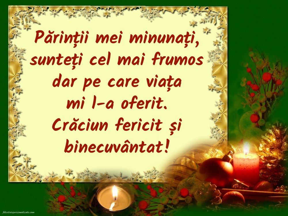 Părinții mei minunați, sunteți cel mai frumos dar pe care viața mi l-a oferit. Crăciun fericit și binecuvântat!