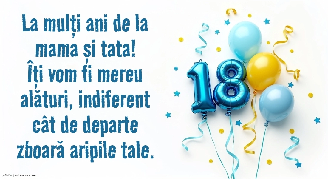 Majoratul fiului tău ⭐ este un moment unic și plin de semnificație, un pas spre maturitate și independență. Ziua în care împlinește 18 ani merită să fie celebrată cu cuvinte care vin din inimă și imagini care să transmită dragostea, respectul și mândria ta ca părinte. În această colecție vei găsi imagini cu felicitări speciale pentru băiatul tău, perfecte pentru a le trimite prin mesaj, a le posta pe rețelele sociale sau a le adăuga într-un album aniversar. Fie că îți dorești o urare emoționantă, una motivațională sau un mesaj vesel și cald, aici găsești exact ce ai nevoie. O imagine bine aleasă poate deveni o amintire prețioasă pentru fiul tău, care pășește acum într-o nouă etapă a vieții sale.