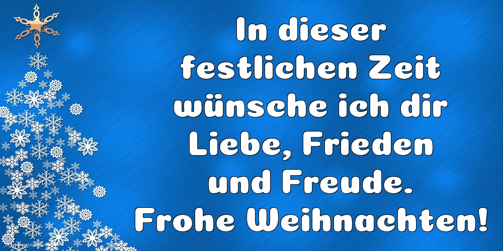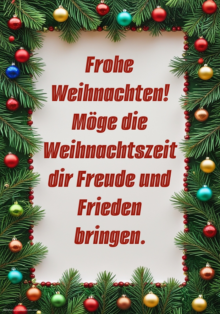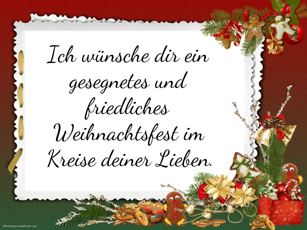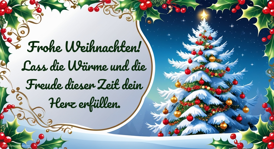 Ich wünsche dir ein gesegnetes Weihnachtsfest, umgeben von Menschen, die dich lieben und schätzen. Möge die Wärme dieser besonderen Zeit dich begleiten und dir Kraft geben für das kommende Jahr.