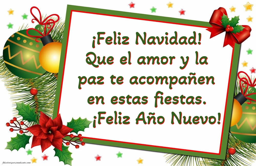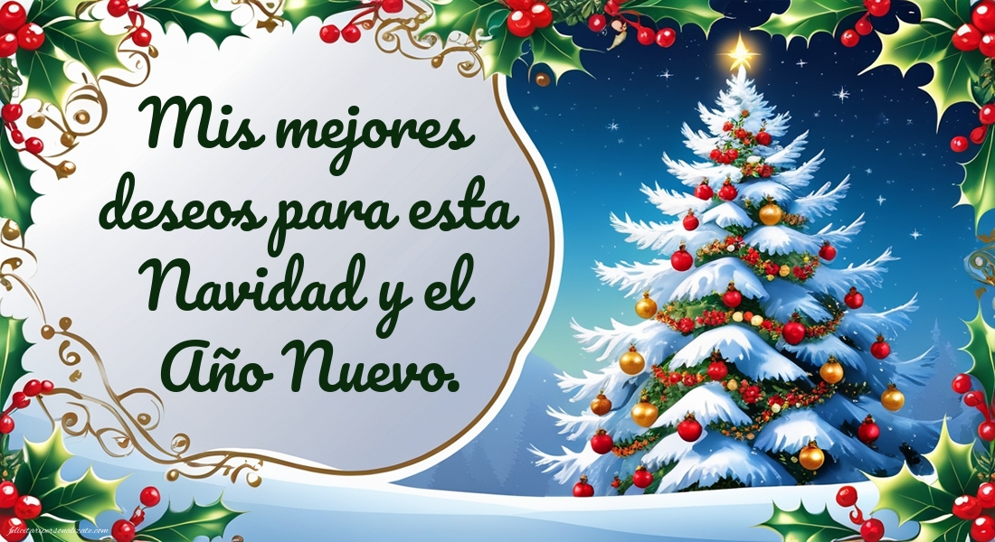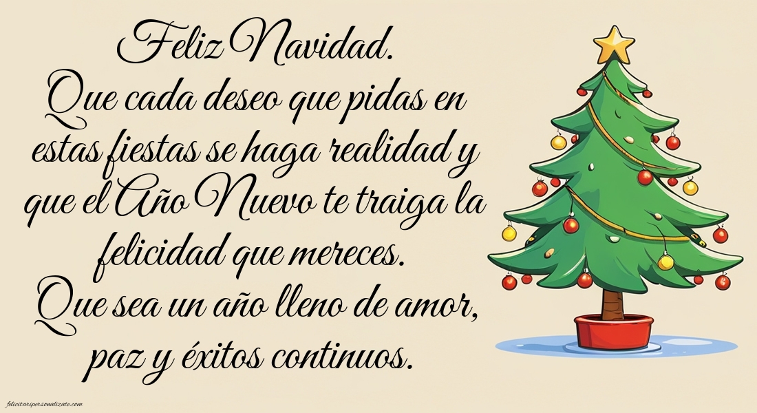 Feliz Navidad. Que cada deseo que pidas en estas fiestas se haga realidad y que el Año Nuevo te traiga la felicidad que mereces. Que sea un año lleno de amor, paz y éxitos continuos.