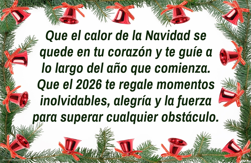 Que el calor de la Navidad se quede en tu corazón y te guíe a lo largo del año que comienza. Que el 2026 te regale momentos inolvidables, alegría y la fuerza para superar cualquier obstáculo.