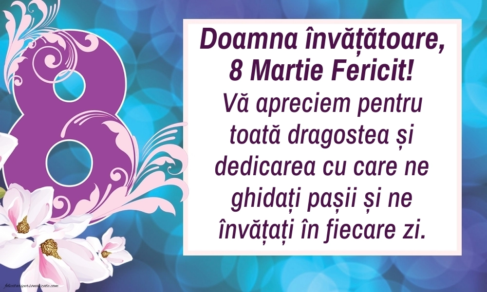Pe această pagină găsești o colecție de imagini de 8 Martie pentru învățătoare ⭐, ideale pentru a transmite respect, apreciere și gânduri frumoase de Ziua Femeii. Învățătoarea are un rol esențial în viața copiilor, fiind cea care îi îndrumă în primii ani de școală, îi învață lucruri importante și le oferă sprijin, răbdare și încurajare. Aici poți descoperi felicitări de 8 Martie pentru învățătoare, imagini cu flori, mesaje emoționante și urări de „La mulți ani!” potrivite pentru această zi specială. Aceste imagini pot fi trimise cu ușurință prin WhatsApp, Facebook sau alte rețele sociale, fiind un mod frumos de a arăta recunoștința pentru munca și dedicarea învățătoarelor. Fie că sunt oferite din partea elevilor sau a părinților, aceste imagini de 8 Martie pentru învățătoare transmit respect și apreciere pentru efortul depus zi de zi în educația copiilor.