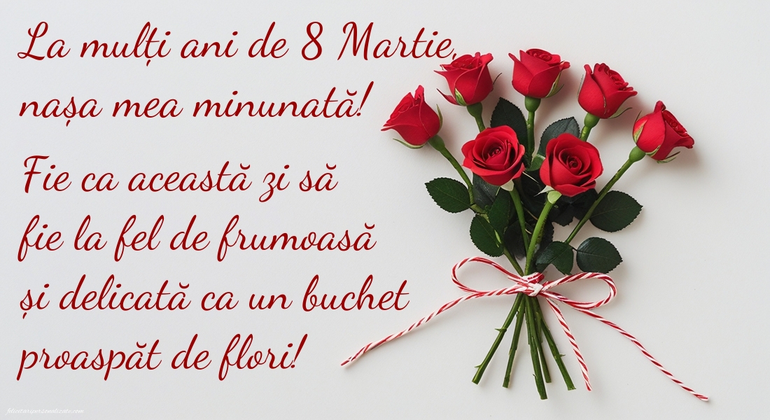 Descoperă cele mai frumoase imagini de 8 Martie pentru nașă ⭐, perfecte pentru a transmite respect, apreciere și gânduri calde de Ziua Femeii. Aici găsești poze elegante, felicitări cu mesaje speciale și imagini potrivite pentru a fi trimise online sau oferite personal. Imaginile de 8 Martie pentru nașă sunt ideale pentru a exprima recunoștința și afecțiunea față de o persoană importantă din familie, aducând bucurie și emoție în această zi dedicată femeilor.