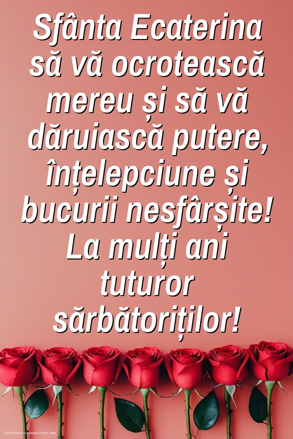 Sfânta Ecaterina să vă ocrotească mereu și să vă dăruiască putere, înțelepciune și bucurii nesfârșite! La mulți ani tuturor sărbătoriților!