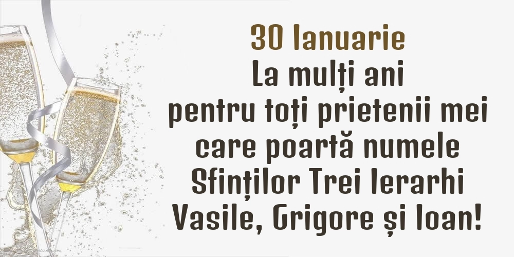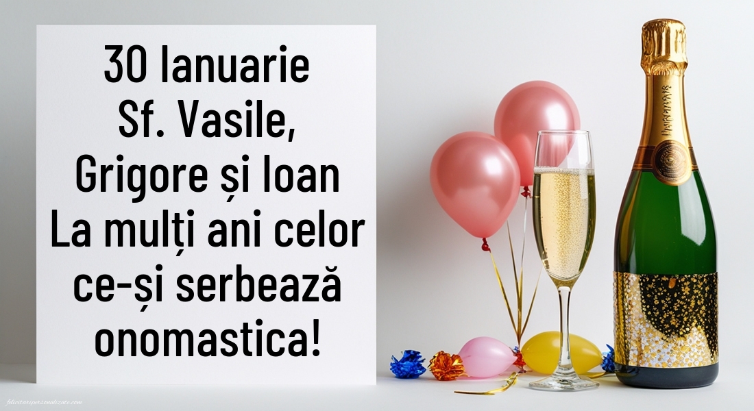 30 Ianuarie Sf. Vasile, Grigore și Ioan La mulți ani Vasile, Vasilica, Grigore, Ioan, Ion, Ioana, Ionel, Ionela, Ionuț, Oana, Nelu, Nela!