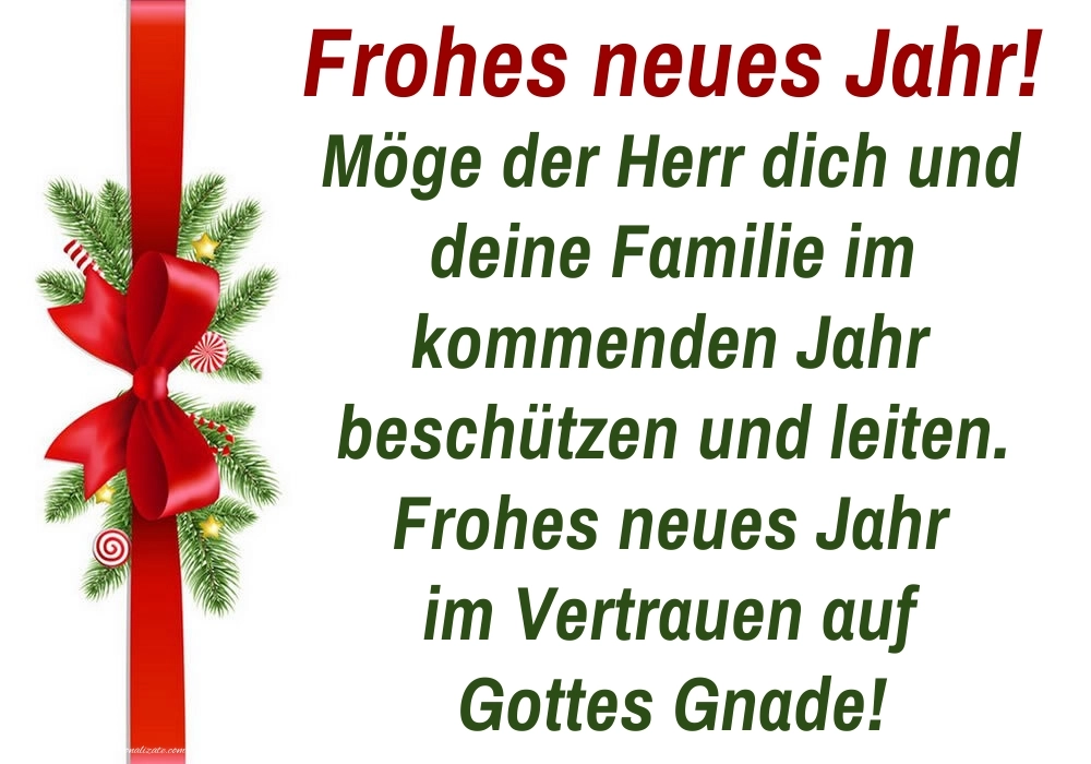 Frohes neues Jahr! Möge der Herr dich und deine Familie im kommenden Jahr beschützen und leiten. Frohes neues Jahr im Vertrauen auf Gottes Gnade!