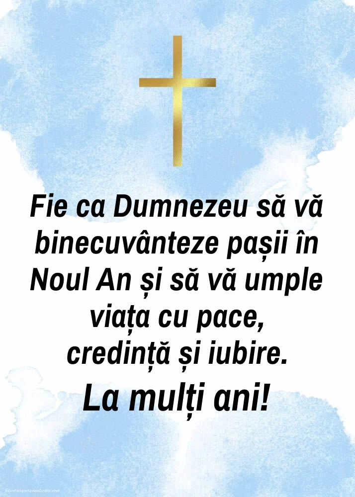 Fie ca Dumnezeu să vă binecuvânteze pașii în Noul An și să vă umple viața cu pace, credință și iubire. La mulți ani!