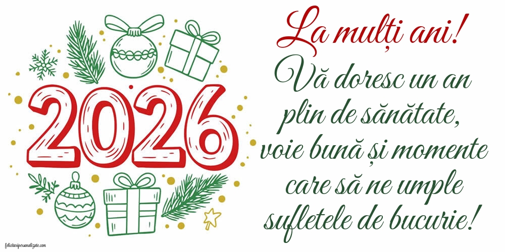 Aho, Aho de anul nou! Sănătate și iubire de la mine pentru tine și la anul care vine să îți meargă numai bine. La mulți ani cu bucurie, sănătate, fericire, pace și multe împliniri. La mulți ani 2026!