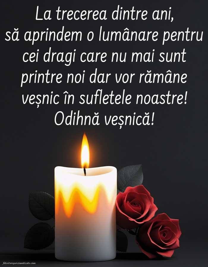La trecerea dintre ani, să aprindem o lumânare pentru cei dragi care nu mai sunt printre noi dar vor rămâne veșnic în sufletele noastre! Odihnă veșnică!