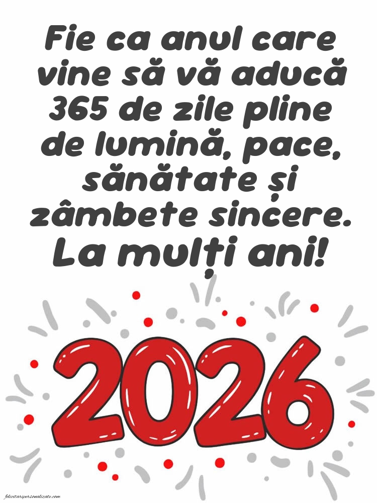 Fie ca anul care vine să vă aducă 365 de zile pline de lumină, pace, sănătate și zâmbete sincere. La mulți ani!