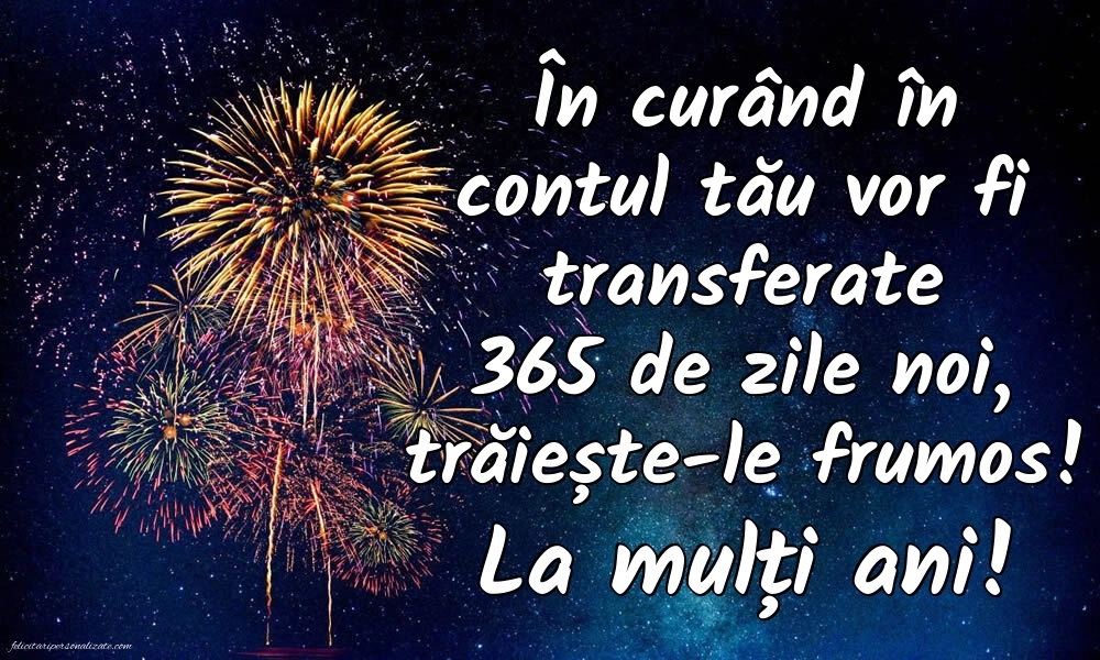 În curând în contul tău vor fi transferate 365 de zile noi, trăiește-le frumos! La mulți ani 2026!