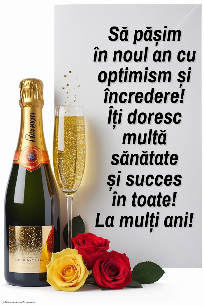 Să pășim în noul an cu optimism și încredere! Îți doresc multă sănătate și succes în toate! La mulți ani!