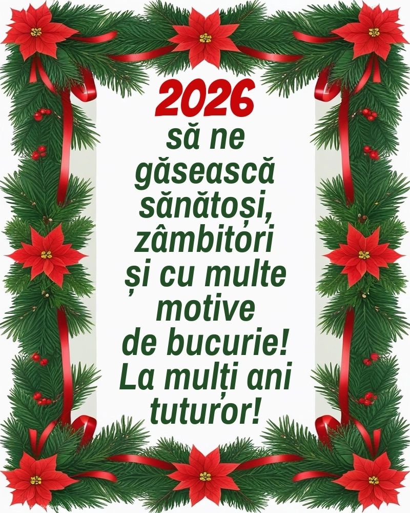 2026 să ne găsească sănătoși, zâmbitori și cu multe motive de bucurie! La mulți ani tuturor!