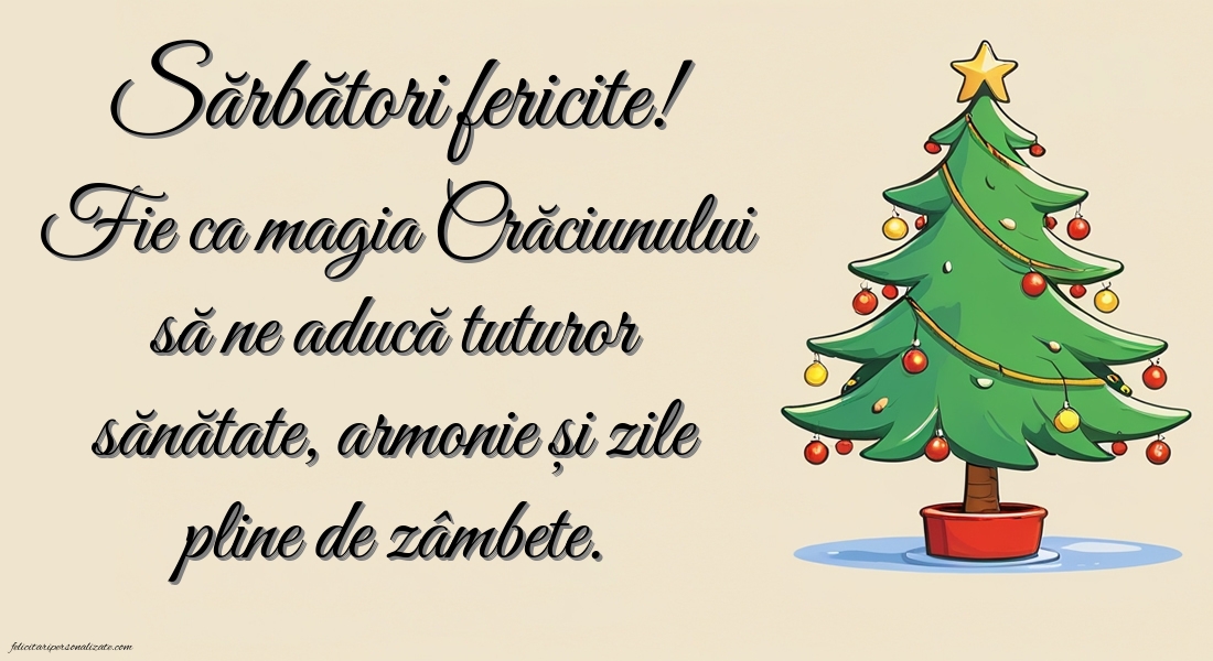 Sărbători fericite! Fie ca magia Crăciunului să ne aducă tuturor sănătate, armonie și zile pline de zâmbete.