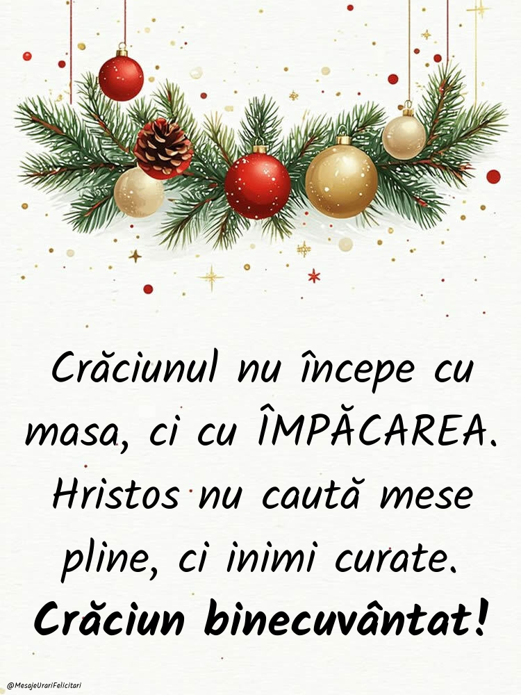 Crăciunul nu începe cu masa, ci cu ÎMPĂCAREA. Hristos nu caută mese pline, ci inimi curate. Crăciun binecuvântat!