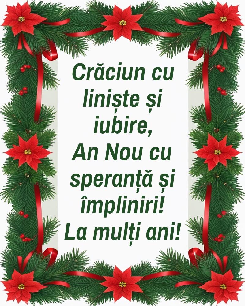 Crăciun cu liniște și iubire, An Nou cu speranță și împliniri! La mulți ani!