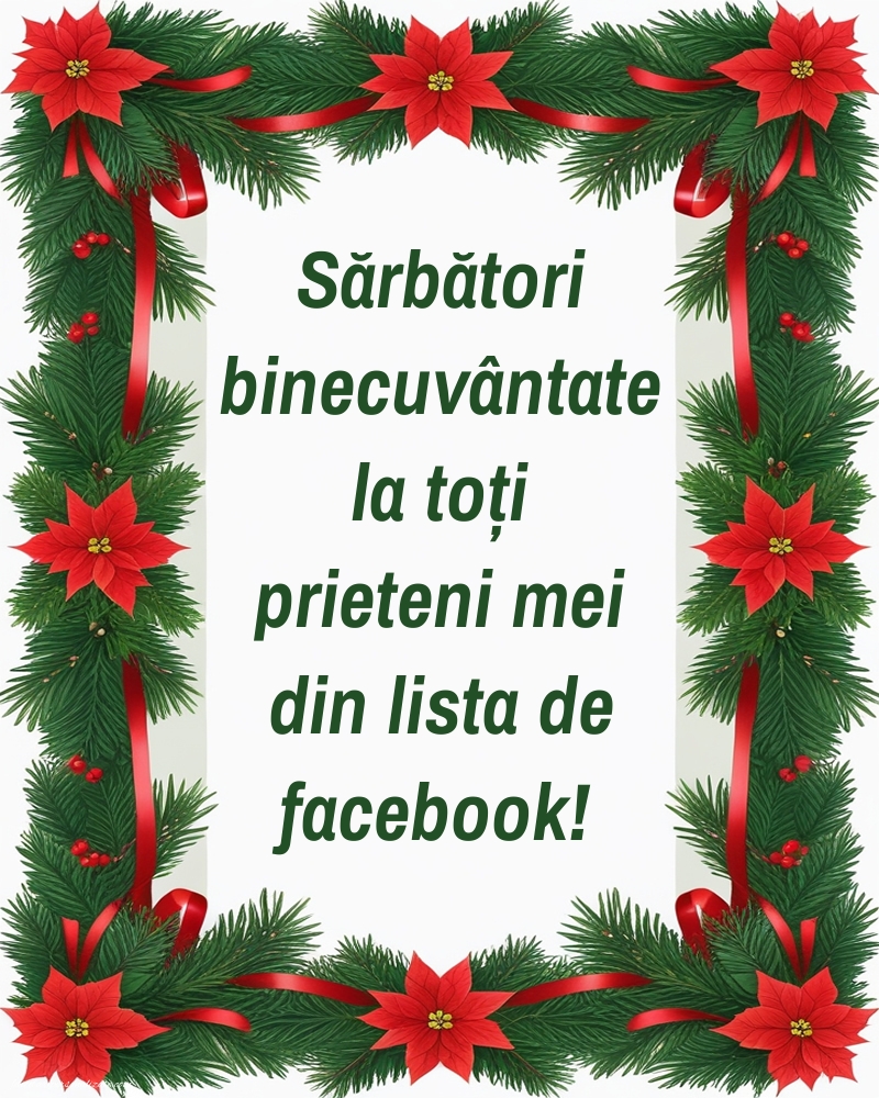 Sărbători binecuvântate la toți prieteni mei din lista de facebook!