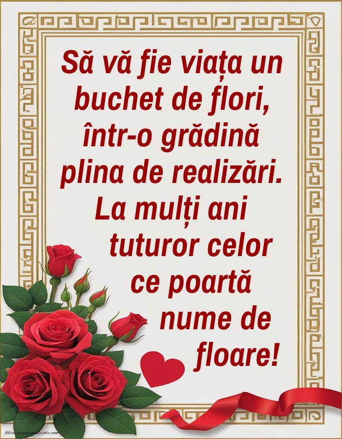 Să vă fie viața un buchet de flori, într-o grădină plina de realizări. La mulți ani tuturor celor ce poartă nume de floare!