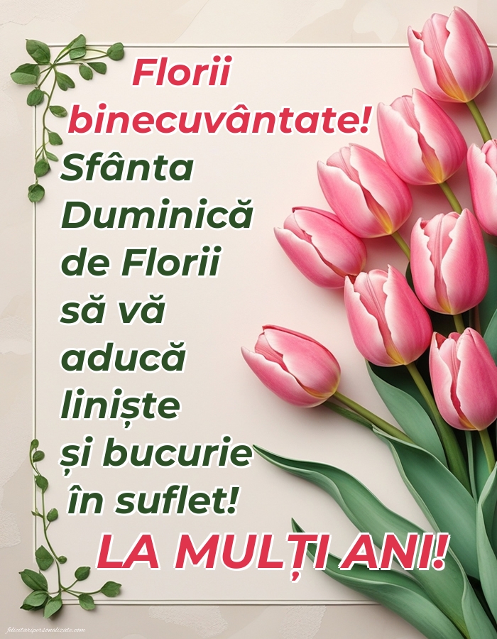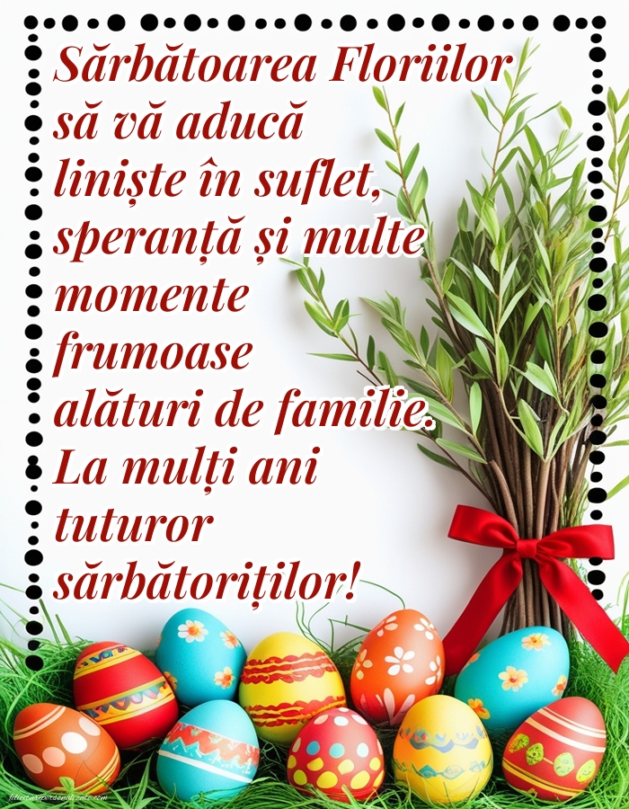 Sărbătoarea Floriilor să vă aducă liniște în suflet, speranță și multe momente frumoase alături de familie. La mulți ani tuturor sărbătoriților!