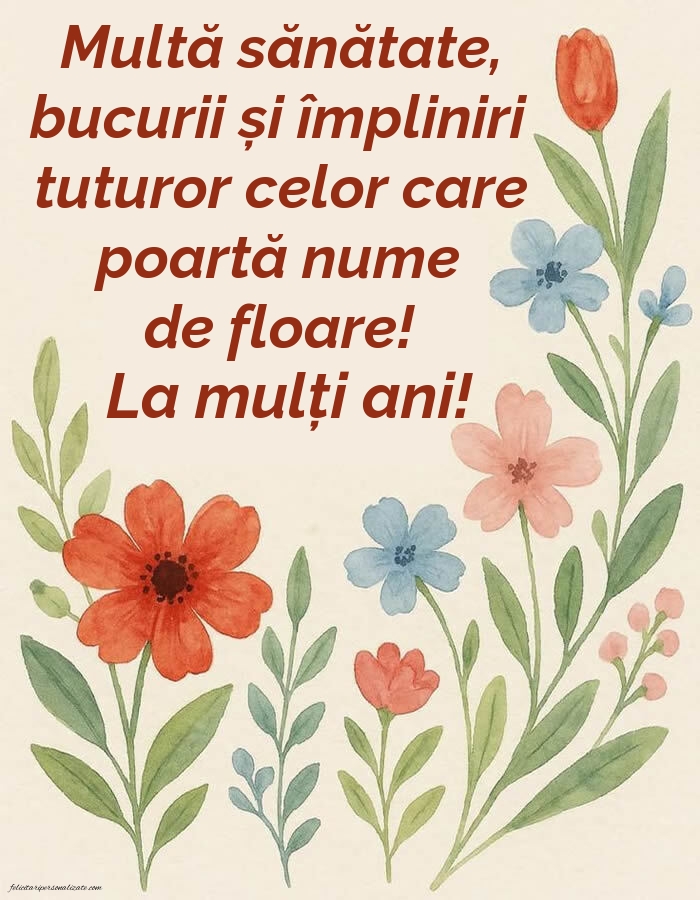 Multă sănătate, bucurii și împliniri tuturor celor care poartă nume de floare! La mulți ani!