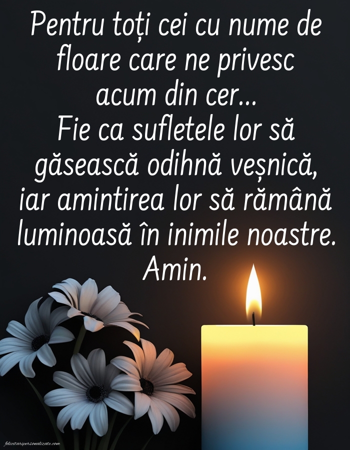 Pentru toți cei cu nume de floare care ne privesc acum din cer... Fie ca sufletele lor să găsească odihnă veșnică, iar amintirea lor să rămână luminoasă în inimile noastre. Amin.