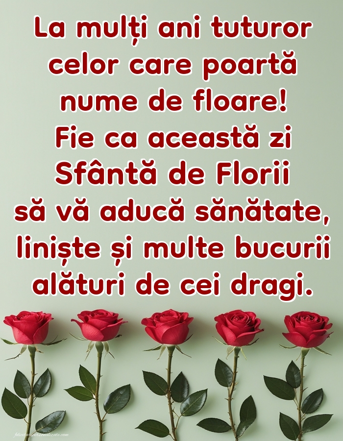 La mulți ani tuturor celor care poartă nume de floare! Fie ca această zi sfântă de Florii să vă aducă sănătate, liniște și multe bucurii alături de cei dragi.