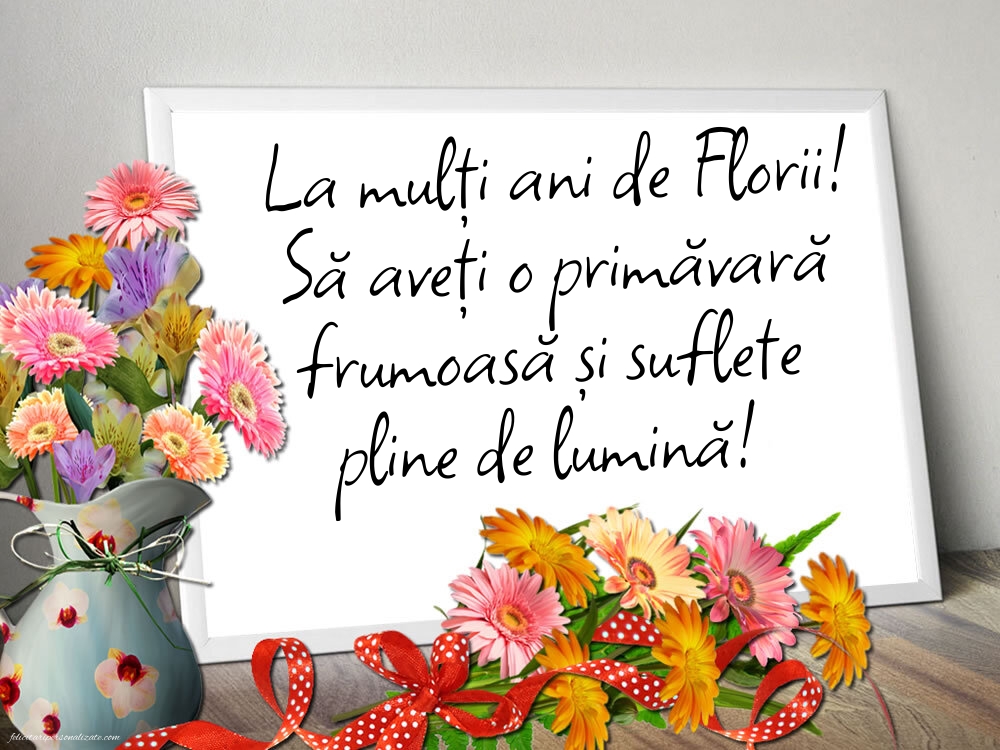 De Florii, să vă înflorească sufletul de bucurie, iar viața să vă fie plină de pace, iubire și împliniri. La mulți ani tuturor celor cu nume de floare!