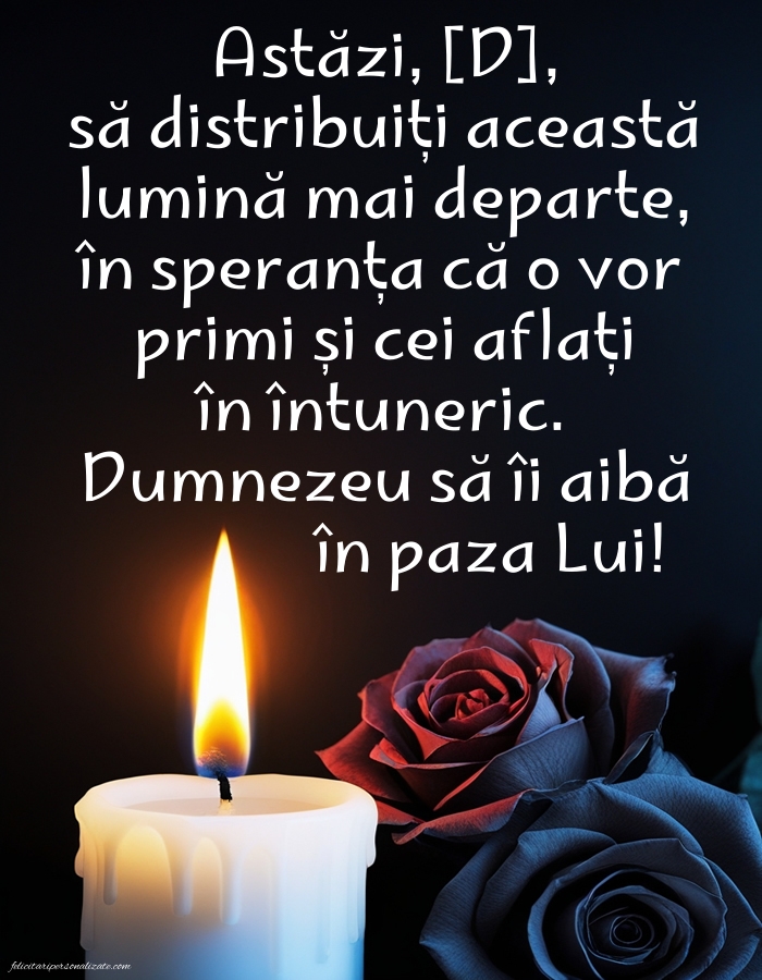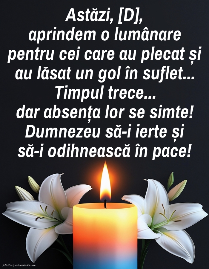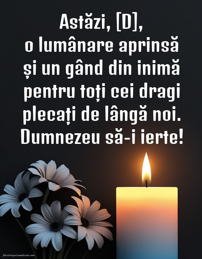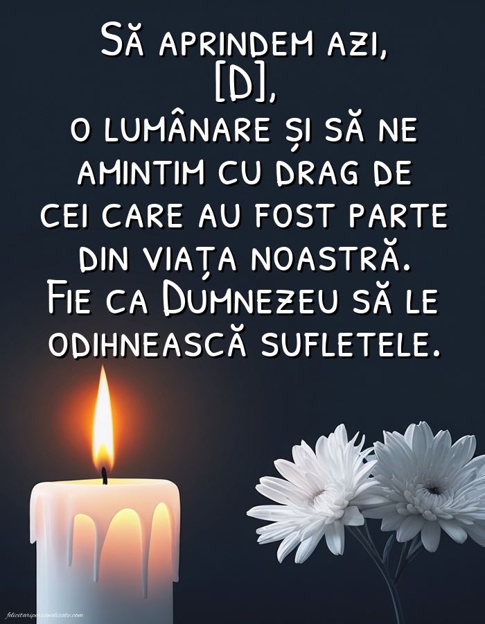 Astăzi, [D], aprindem o lumânare pentru cei care nu mai sunt printre noi, dar trăiesc în amintirile noastre. Dumnezeu să le dăruiască odihnă veșnică.