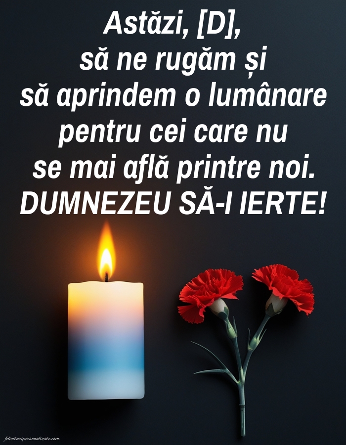 Astăzi, [D], să ne rugăm și să aprindem o lumânare pentru cei care nu se mai află printre noi. DUMNEZEU SĂ-I IERTE!