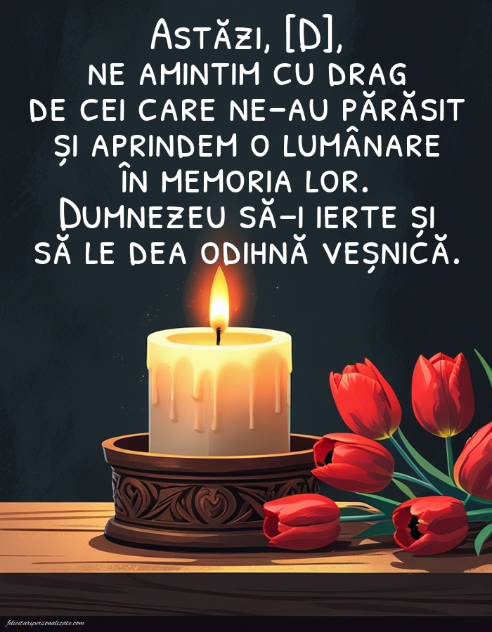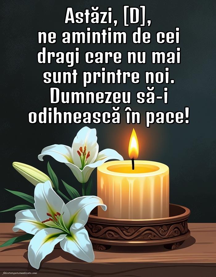 Descoperă colecția noastră de imagini și mesaje de comemorare pentru Facebook, WhatsApp, Instagram și alte platforme, potrivite pentru a onora memoria celor dragi și a păstra amintiri speciale.
