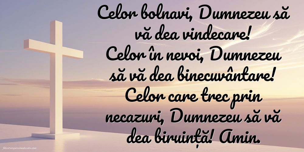 Celor bolnavi, Dumnezeu să vă dea vindecare! Celor în nevoi, Dumnezeu să vă dea binecuvântare! Celor care trec prin necazuri, Dumnezeu să vă dea biruință! Amin.
