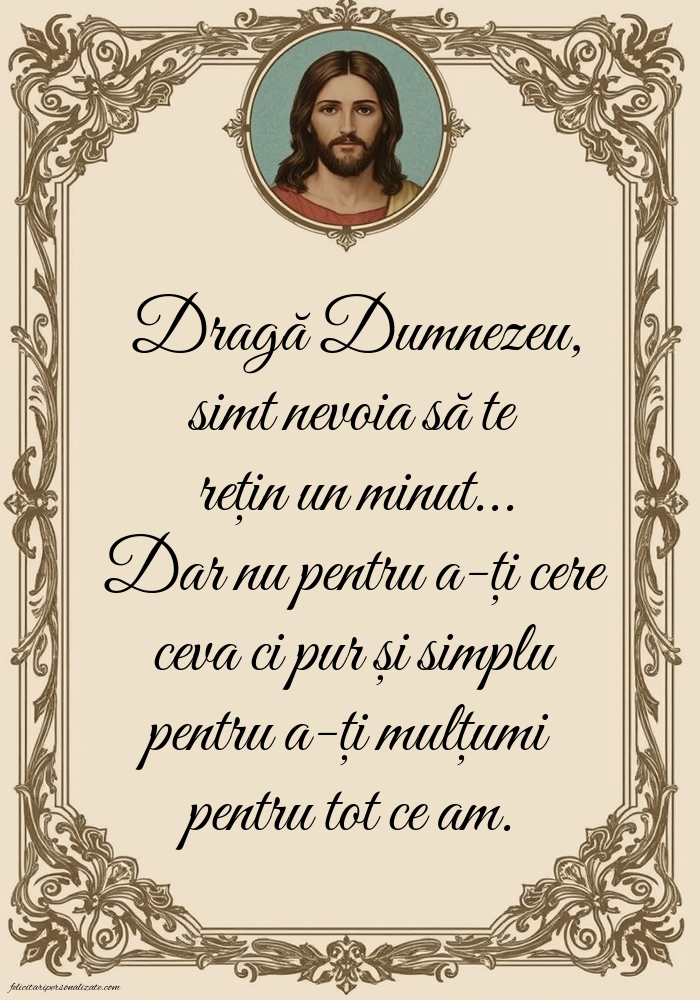 Dragă Dumnezeu, simt nevoia să te rețin un minut... Dar nu pentru a-ți cere ceva ci pur și simplu pentru a-ți mulțumi pentru tot ce am.