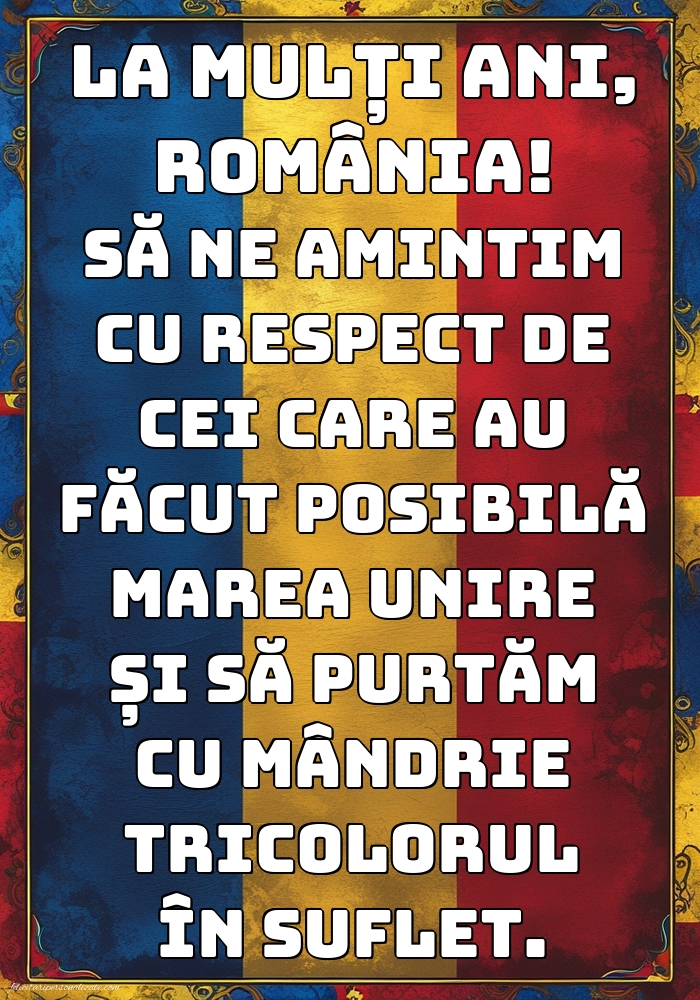 La mulți ani, România! Să ne amintim cu respect de cei care au făcut posibilă Marea Unire și să purtăm cu mândrie tricolorul în suflet.