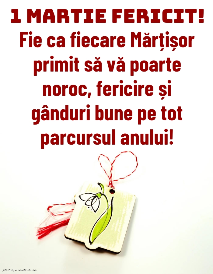 1 Martie fericit! Fie ca fiecare Mărțișor primit să vă poarte noroc, fericire și gânduri bune pe tot parcursul anului!