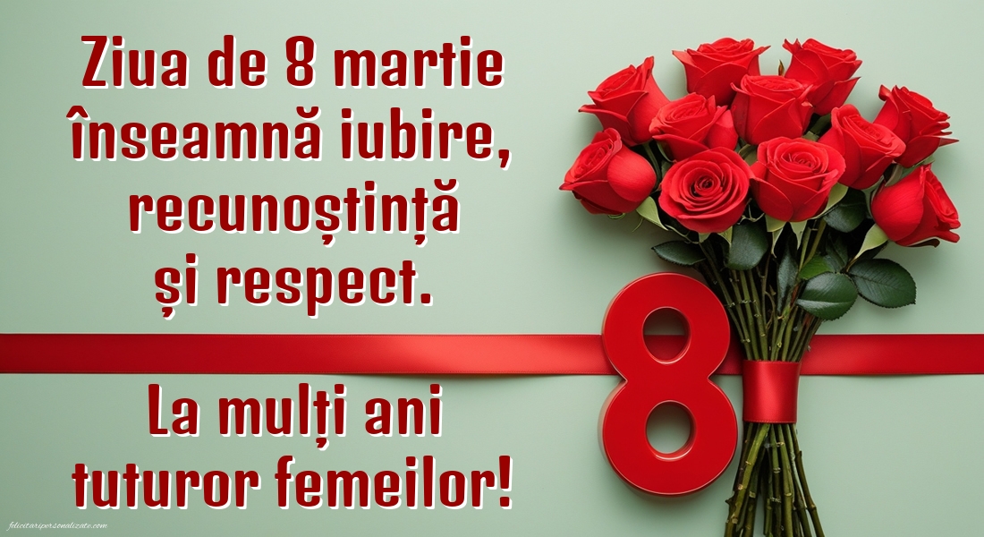 Ziua de 8 martie înseamnă iubire, recunoștință și respect. La mulți ani tuturor femeilor!