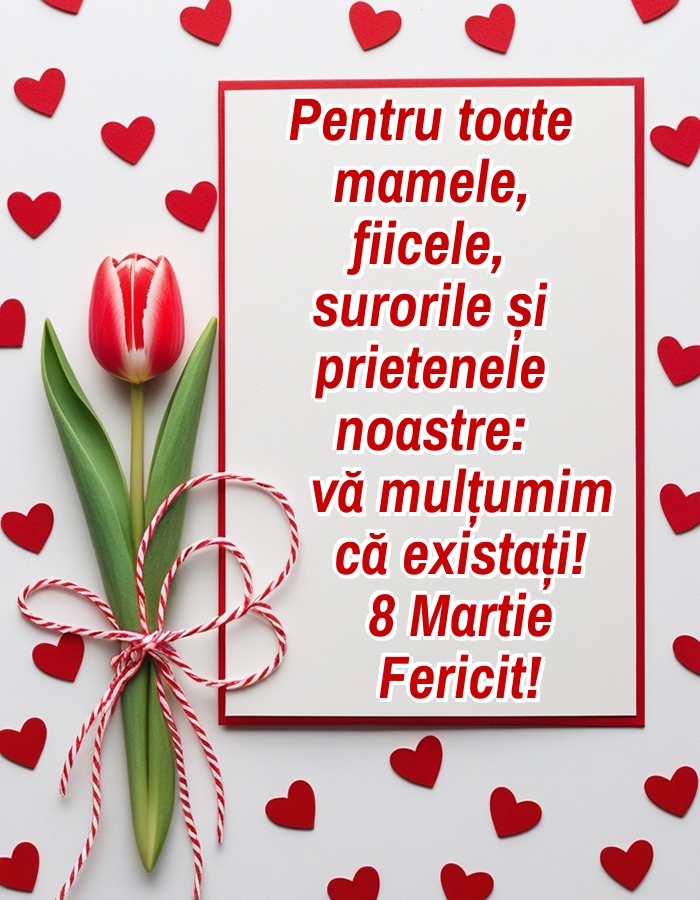 De 8 Martie îmi doresc ca toate femeile din viața mea să fie mereu fericite și sănătoase! La mulți ani!