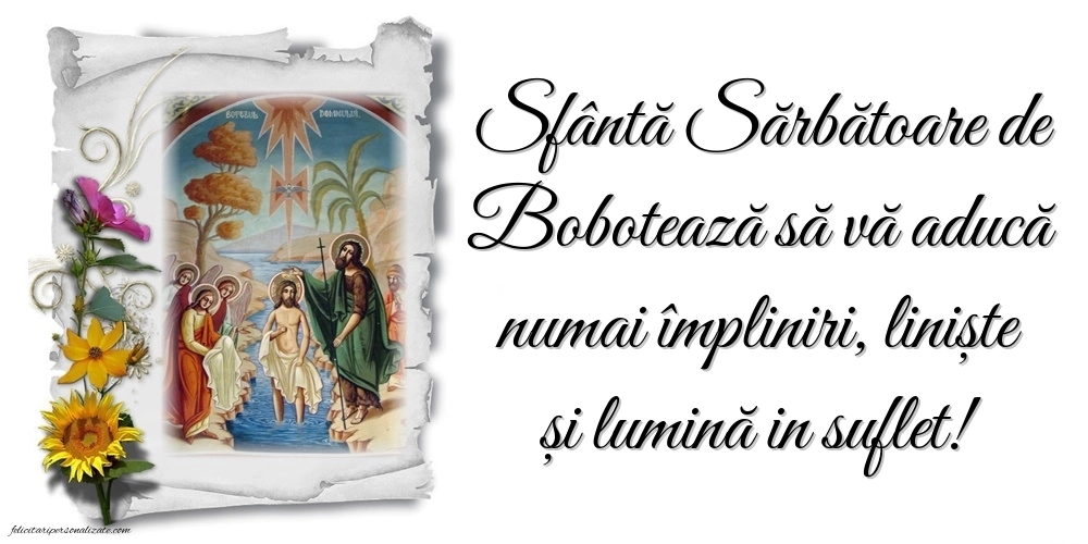 În această zi de sărbătoare, să primim cu toții binecuvântarea apei sfințite și să avem sufletele mai curate, mai liniștite și pline de speranță. Vă doresc tuturor o Bobotează frumoasă, cu pace și bucurii nenumărate!