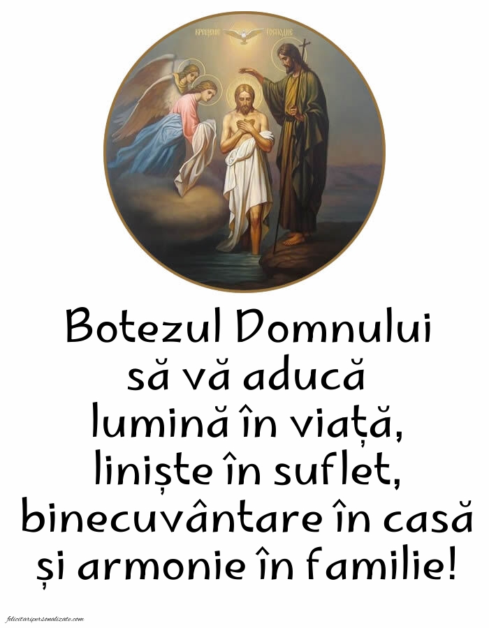 Botezul Domnului să vă aducă lumină în viață, liniște în suflet, binecuvântare în casă și armonie în familie!