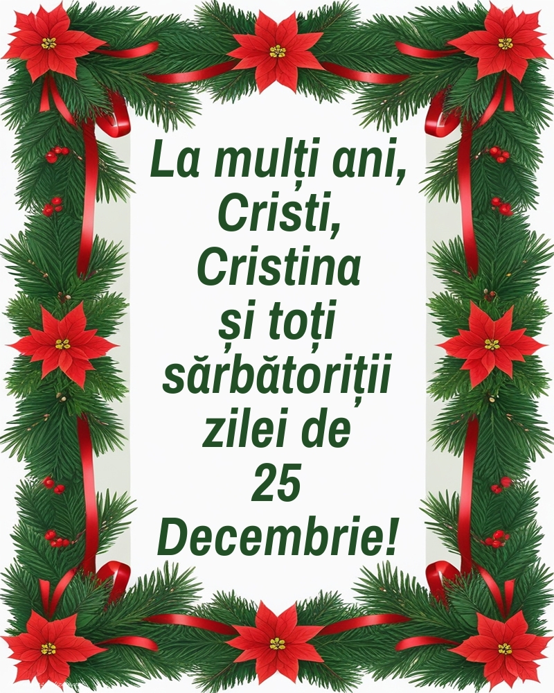 La mulți ani, Cristi, Cristina și toți sărbătoriții zilei de 25 Decembrie!