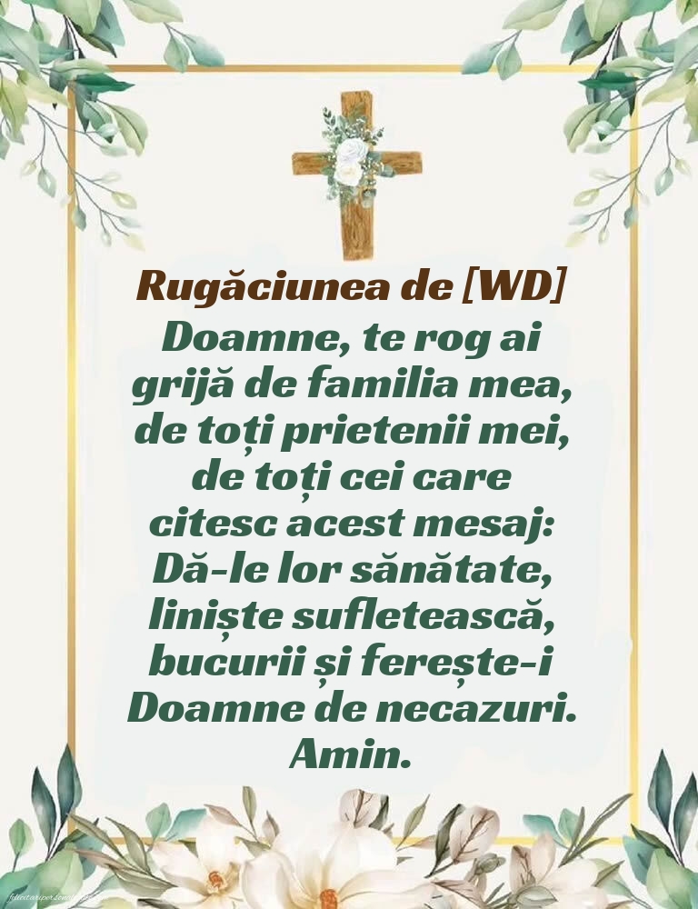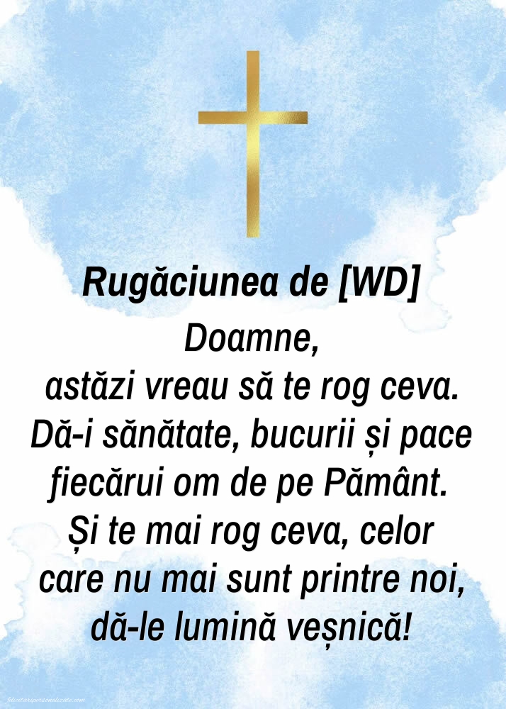 Această colecție de imagini cu rugăciuni pentru Facebook este creată pentru toți cei care doresc să transmită un mesaj de credință, speranță și pace în mediul online. Imaginile îmbină texte de rugăciune scurte și profunde cu elemente vizuale religioase, fiind ideale pentru postări zilnice sau pentru momente speciale de reculegere. Vei găsi imagini cu rugăciuni de dimineață, rugăciuni de seară, mesaje pentru protecție divină, sănătate, familie și liniște sufletească. Grafica include simboluri creștine precum crucea, lumânările aprinse, biserici, cer senin, icoane și peisaje liniștitoare, toate menite să transmită un sentiment de pace interioară.