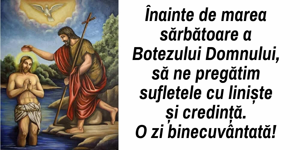 Înainte de marea sărbătoare a Botezului Domnului, să ne pregătim sufletele cu liniște și credință. O zi binecuvântată!