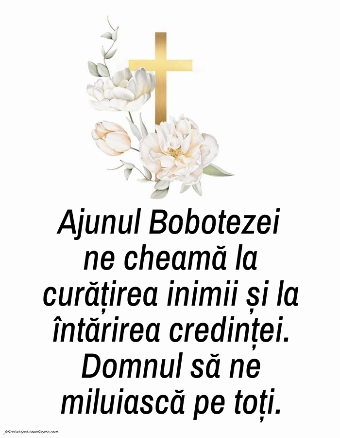 Ajunul Bobotezei ne cheamă la curățirea inimii și la întărirea credinței. Domnul să ne miluiască pe toți.