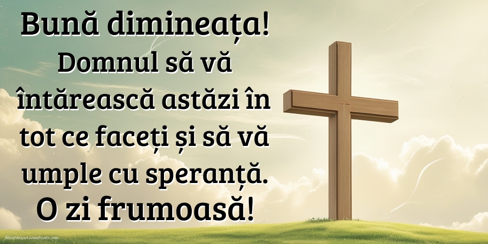 Bună dimineața! Domnul să vă întărească astăzi în tot ce faceți și să vă umple cu speranță. O zi frumoasă!