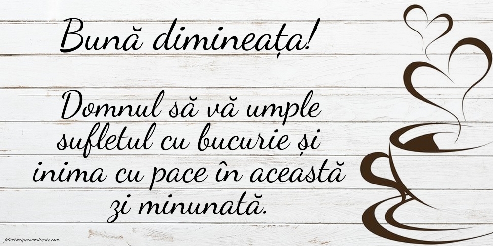 Bună dimineața! Domnul să vă umple sufletul cu bucurie și inima cu pace în această zi minunată.