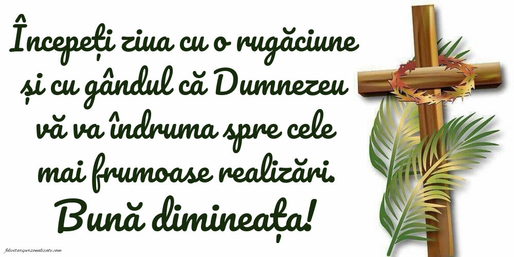 Începeți ziua cu o rugăciune și cu gândul că Dumnezeu vă va îndruma spre cele mai frumoase realizări. Bună dimineața!